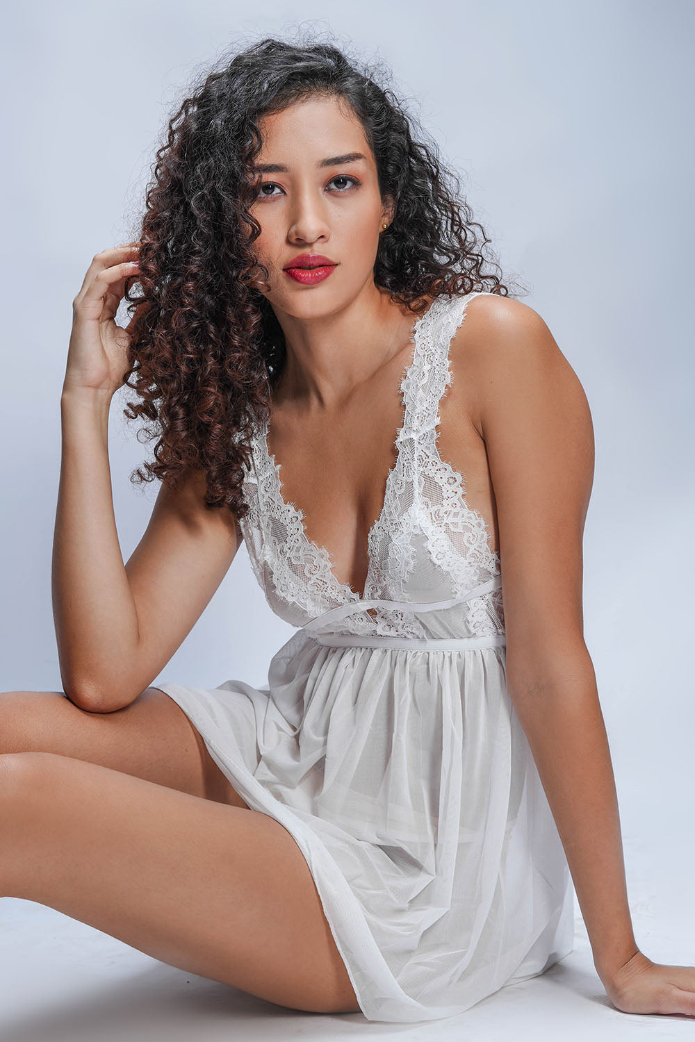 Say hello to your unapologetic alter ego. This lace-detailed babydoll is made to slip on and slide off, designed with daring plunge cuts and sultry side straps that know exactly how to flirt. Feels like freedom, looks like fantasy. No rules—just vibes.